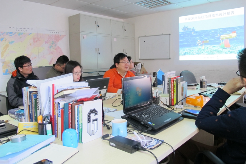 期间,与会人员听取了刘晓东对声学深拖系统的操作手册内容、数据后处理应用软件的讲解,以及该系统项目技术设计报告的介绍。并针对该声学深拖系统即将开展的湖试和浅海试验所面临的问题进行了交流、讨论。