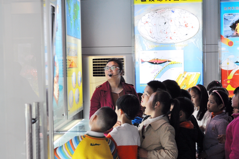 在科技馆参观期间,科普志愿者为小学生们做了生动的讲解,针对小朋友感兴趣的地球是怎么形成的,火山跟地震是如何产生的,石油是如何形成的,什么是“可燃冰”等内容进行了详细介绍,并为孩子们介绍了海洋地质调查船、钻井平台、动植物化石等。小朋友们对恐龙蛋、“可燃冰”等产生了浓厚的兴趣,与科普志愿者频繁互动交流。