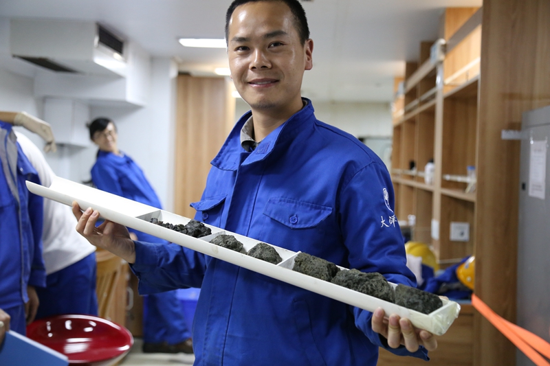 两个航次的海上工作中,大家在船上进行了类型丰富的深海地质样品的描述、分类和初步测试工作,并学习了包括深海可视拖体、电视抓斗、中深钻、CTD、ADCP、多波束测深系统、浅剖测量系统、海洋重力仪等仪器的工作原理和数据记录方法,熟练掌握了这些设备的操作步骤和数据处理方法,还亲身经历了我国4500米级无人潜器“潜龙二号”的海试及其应用性下潜试验,为我所科研人员更好地适应深远海科考工作累积了丰富的经验和良好的技术贮备。