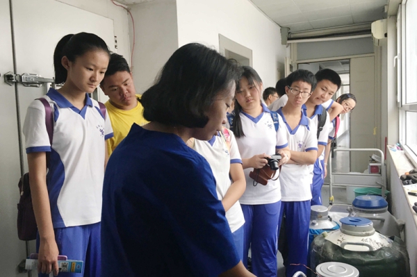 随后,科普志愿者带领同学们参观了青岛海洋所天然气水合物重点实验室,为同学们介绍了天然气水合物的结构组成、形成与分布、勘探及开发等科普知识,并参观了X射线CT扫描系统、射线衍射仪和天然气水合物低温物性实验室。期间,在我所开展科研小课题的青岛第二中学的高一学生为同学们详细讲解了如何用X射线CT扫描系统获取天然气水合物样品的内部结构特征。