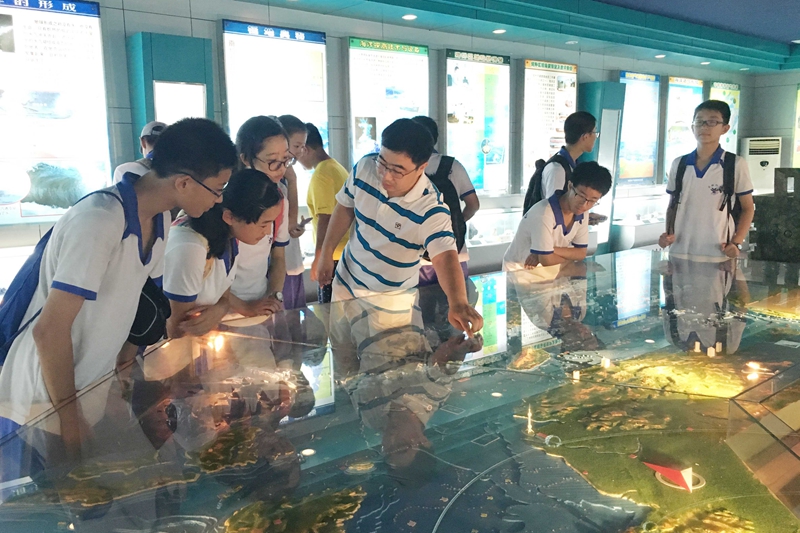 青岛海洋所科普志愿者带领同学们参观了国土资源科普基地科技展览馆,为大家详细地讲解了地球的形成演化、板块运动、火山和地震的产生、石油的形成和开采、以及新能源“可燃冰”等科普知识。并以自身的海上调查工作经验为例,生动有趣的介绍了我所开展的海洋地质调查工作,引导同学们提出感兴趣的话题进行讨论。