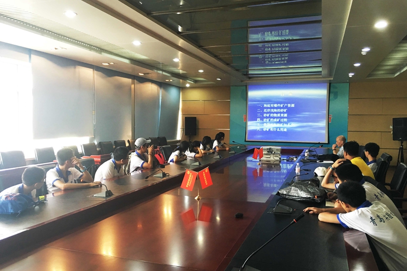 参观结束后,同学们听取了莫杰研究员题为“海底有什么矿产资源”的科普讲座,了解了砂矿的物质来源、成矿过程及用途等,同学们对讲座表现出浓厚的兴趣,气氛轻松活跃。