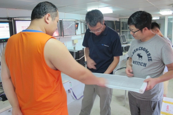 8月24日,在“业治铮”船避风靠港期间,我所技术方法室组织检查组对“长江三角洲与红河三角洲全新世沉积演化对比研究”2016年度浅剖测量外业施工进行了中期安全质量检查。