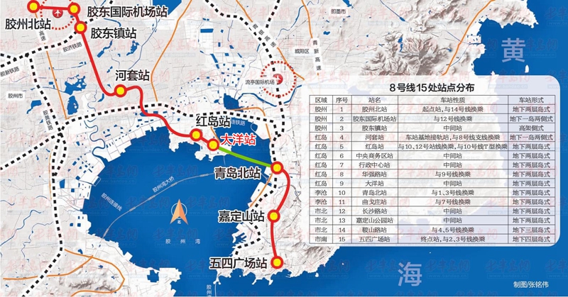 据了解,青岛市地铁8号线主线全长60.7km,起点为胶州北站,终点为五四广场站。海勘院中标的线路为一标段即中间的一段,全长约8.1km,主要为8号线过海(胶州湾)隧道段,其中海域段长约5.4km,陆域段长约为2.7km。工程位于胶州湾北部城阳区红岛与李沧区铁路青岛北站之间海域,青岛海湾大桥北部,环湾路西侧。