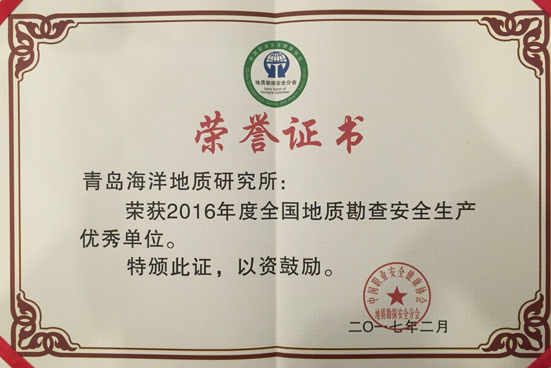 据了解,“2016年度全国地质勘查安全生产优秀单位”评选活动由中国职业安全健康协会地质勘探安全分会主办,主要是为表彰2016年度安全生产工作方面取得突出成绩的地质勘查单位。全国共有17个地勘单位获得“2016年度全国地质勘查安全生产优秀单位”称号,青岛海洋所是中国地质调查局系统获得该称号的两个单位之一。