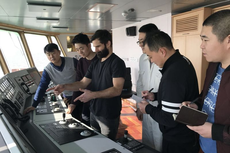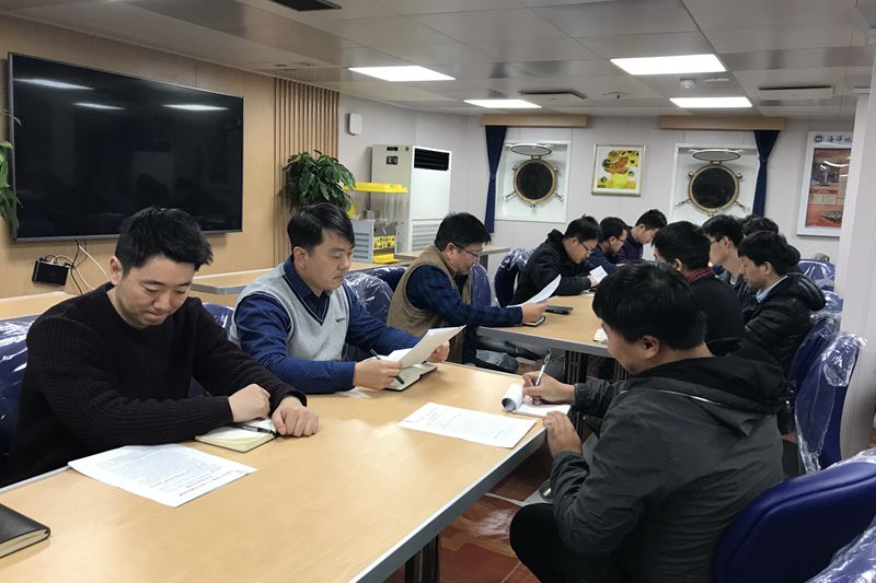 青岛海洋所技术人员与设备商和中石化上海海洋物探分公司的工程师们就设备原理与操作技术进行了充分交流,并利用工作间隙组织开展了各种相关设备的现场操作培训。共组织现场培训7次,内容包括综合导航、气枪控制、电缆采集、水鸟拆装、气枪维护、空压机操作、多道地震收放系统操作等。在现场工作实践中不断学习和提高,进一步掌握了多道地震作业的技术方法。