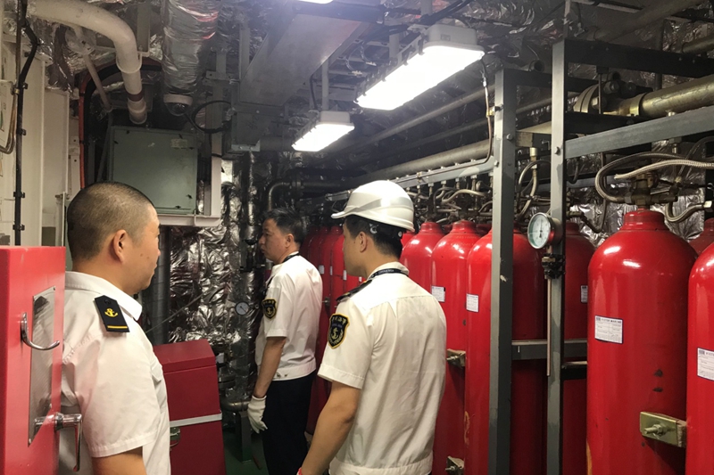 深圳大铲海事局的执法人员登船进行了突击检查,在船长和相关工作人员的陪同下,对船舶证书、全船消防救生设备、导航通讯设备、防污染设备等进行了全面检查。检查结束后执法人员对“海洋地质九号”船给予高度评价,充分肯定船舶的运行管理工作。