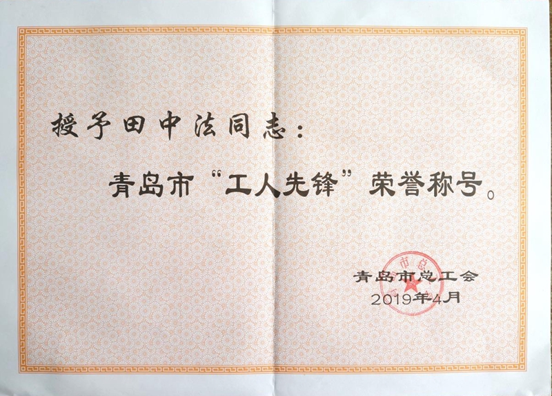 近日,青岛市总工会在全市范围内开展工人先锋评选活动,经过层层推荐审核,自然资源部中国地质调查局青岛海洋地质研究所田中法同志被授予青岛市“工人先锋”荣誉称号。