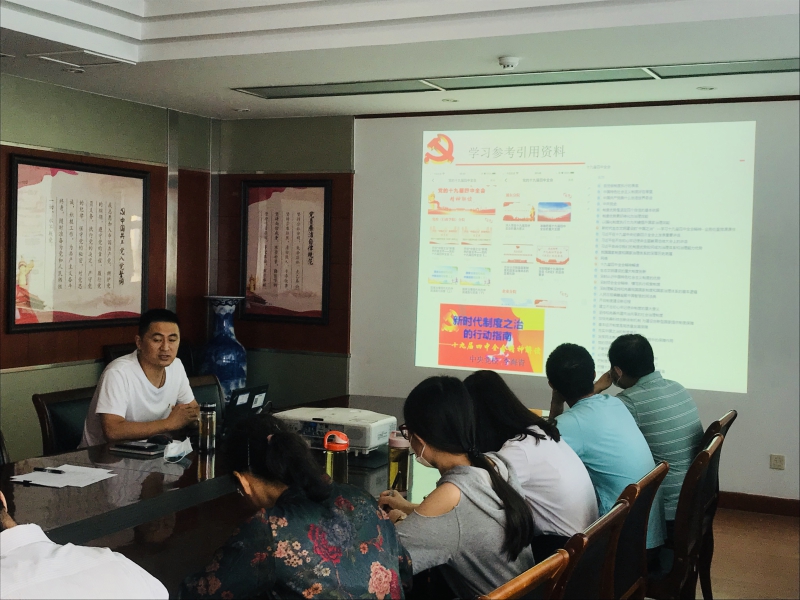 活动前,大家面对鲜艳的党旗,举起右手庄严宣誓,重温入党誓词。支部书记徐磊同志作了《深刻领悟全会精神 模范执行规章制度—学习十九届四中全会精神》的主题党课。