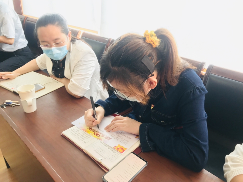 随后,在激动和热烈的氛围中,同志们在党旗下亲手在彩纸上写下了自己最想对党说的话。“为实现中华民族伟大复兴的中国梦努力奋斗” “守初心、担使命”“坚定不移永远跟党走”“愿党更美好”“不惧风雨,勇挑重担”等一句句简短却饱含深情的话语,从不同角度表达了支部全体党员对党和国家的衷心祝福和无限热爱,质朴而又挚诚的语言流露出同志们知党、敬党、爱党、颂党的真情实感。