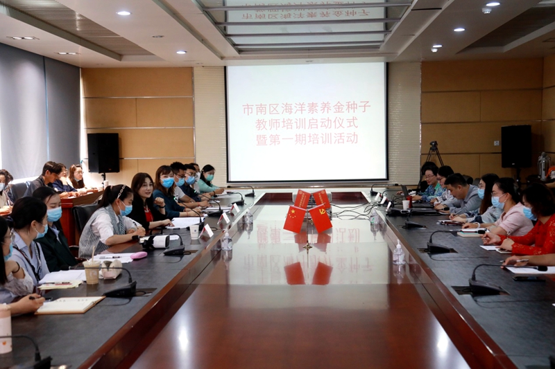 5月25日,自然资源部中国地质调查局青岛海洋地质研究所与青岛市市南区教育研究中心联合举办了“市南区海洋素养金种子教师培训启动仪式暨第一期培训活动”,对来自市南区各个中小学的40名教师代表进行了培训。