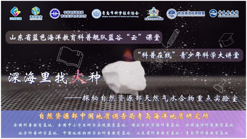 2022年6月8日是第十四个世界海洋日和第十五个全国海洋宣传日。为了树立和践行人与自然和谐共生理念,提升全民海洋意识,引导社会公众保护海洋生态,助力海洋强国建设,自然资源部中国地质调查局青岛海洋地质研究所联合山东教育电视台、青岛蓝谷管理局、青岛市科学技术协会、胶东五市海洋科普联盟、青岛海洋科普联盟和青岛水族馆在6月8日成功举办了“深海里找火种——探秘自然资源部天然气水合物重点实验室”实景科普讲解活动,开启了山东省蓝色海洋教育科普舰队的第一堂授课,活动通过山东教育电视台视频号以及青岛海洋科普联盟直播平台进行全网播放。