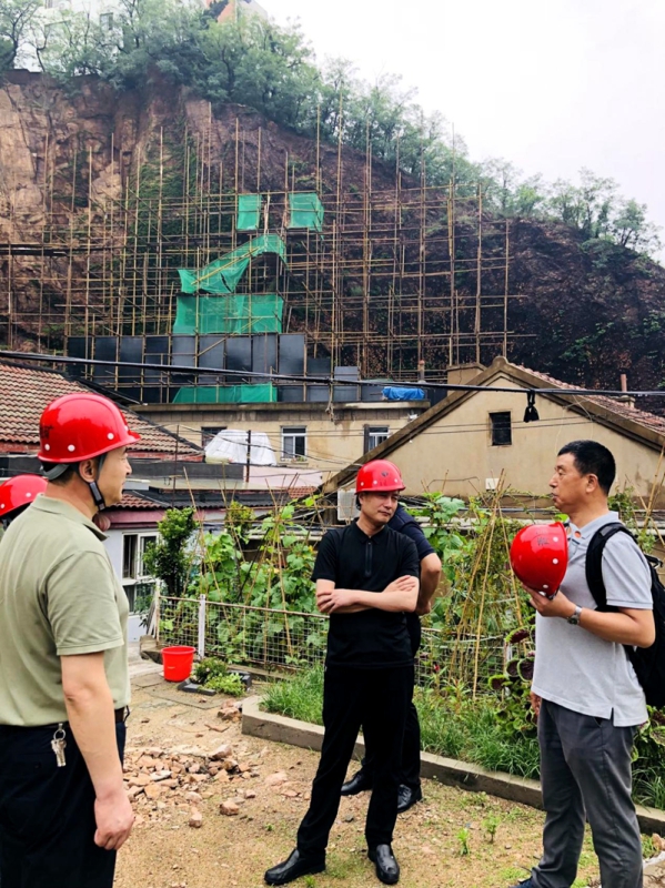 在青岛市对市北区大连路23号岩体崩塌隐患点进行排查