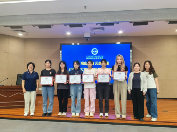 闭营仪式上,两地青年学生完成了实习问卷,做了结业汇报,分享了实习体验,青岛海洋地质研究所为学员颁发实习证书和纪念品。