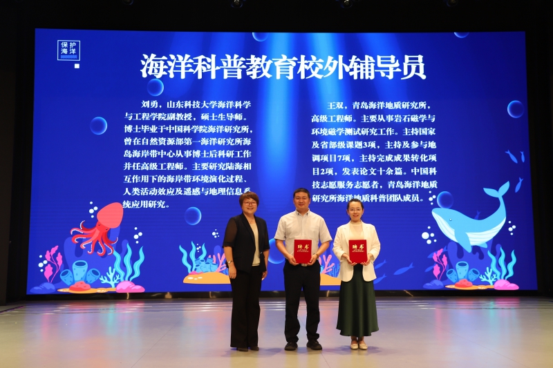 活动最后,王双高级工程师从城阳区礼德小学负责人手中领取了海洋教育校外辅导员聘书,这标志着她将肩负起更多的科普责任,持续为学校海洋教育工作助力,引领更多青少年走进海洋科学的殿堂,在孩子们心中点亮对海洋探索的希望之光。