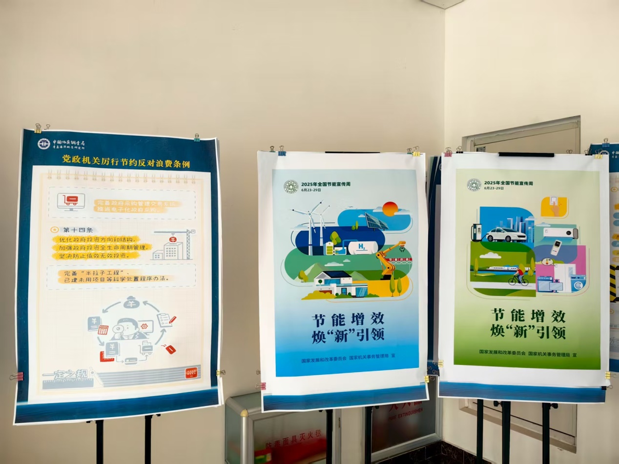 活动期间,青岛海洋地质研究所通过多渠道普及节能知识。在办公区域张贴节约用水、双面打印等提示标语,并通过电子屏循环播放节能宣传视频,强化职工节能意识;推广无纸化办公,优化线上办公系统,减少纸张消耗;倡导公共交通出行,新建充电桩设施,鼓励使用新能源汽车。此外,青岛海洋地质研究所将“关门 关窗 关灯 关电脑 关空调”的“五关”要求纳入日常管理要求,形成长效机制。