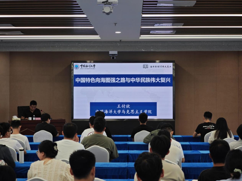 王付欣教授以学习贯彻习近平总书记关于海洋强国战略的重要论述贯穿全程,从海洋经济、海洋科技、海洋生态保护、海洋命运共同体和海洋权益等多重维度展开论述。其内容紧密结合时事热点,深入浅出地诠释了“建设海洋强国是实现中华民族伟大复兴的重大战略任务”的要义内涵,勉励同学们秉持家国情怀和责任担当,以专业所学助力海洋强国建设。