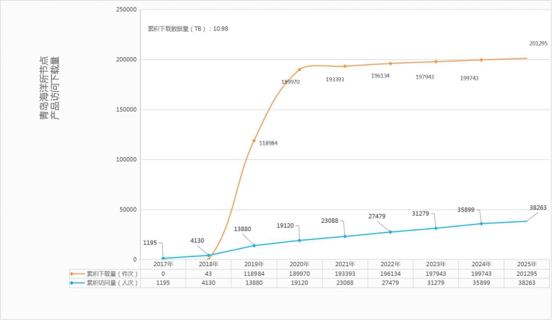 图2 青岛海洋所节点历年度产品访问下载情况统计图