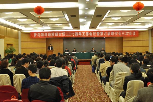 3月31日,在雄壮的国歌声中,青岛所2014年工作会议暨六届职代会三次会议顺利召开。会上,彭轩明所长作了题为《聚焦能力建设 创新基础管理 全面提升海洋地质调查能力与水平》的工作报告,财务资产处处长张波做了所2013年财务决算及2014年财务预算的报告。全所干部职工260余人参加了本次大会。