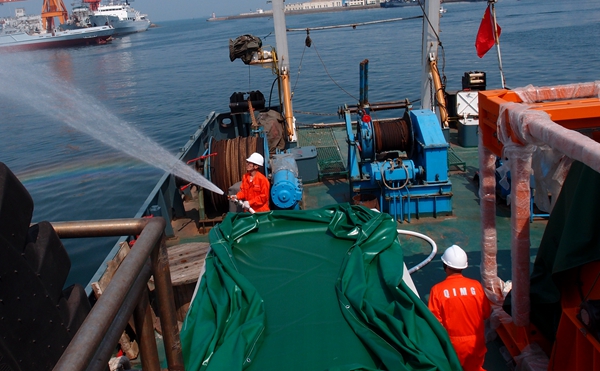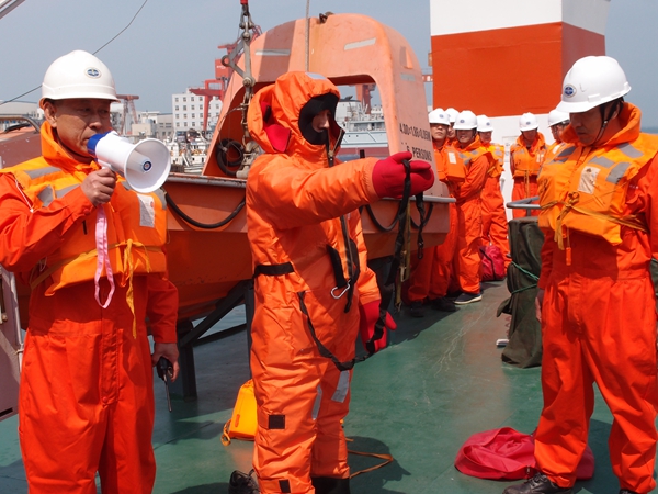 期间,安全检查小组对“业治铮”进行了全方位的安全检查,重点检查了船舶(船员)证件、消防救生设施、通讯设备、生活饮食卫生、调查仪器设备、劳保防护和救生用品的配备等。此外,组织模拟了机舱起火场景下的消防和逃生应急演练,演练过程中查看了劳保用品和救生用品的配备情况,检验了消防设施的有效性。船长现场就投放救生艇、救生衣和救生服穿戴、落水后的注意事项、失火后应采取的措施等方面进行了培训。