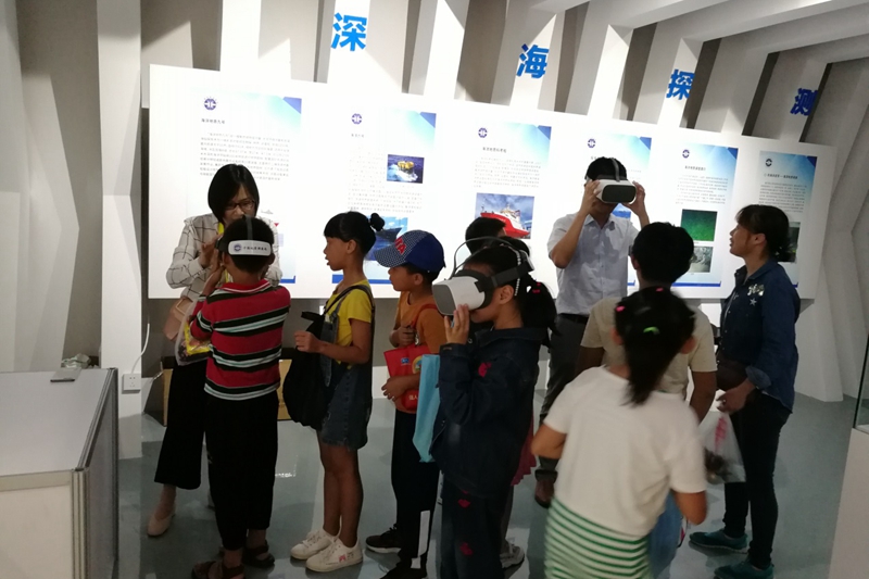 据介绍,海洋地质虚拟现实科普系统2.0版,利用全新的全景智能展示技术进行深海探秘。用户借助VR眼镜,可以在大陆架、大陆坡、深海海盆、大洋中脊中漫游,领略从陆地到深海的地貌变化;可以置身在深海热液、冷泉等极端环境中,探索深海秘境和奇观;可以在海底钻孔中浏览地层,体会时代变迁与演化;可以亲临“海洋地质九号”调查船,了解目前海洋调查的先进仪器和设备……