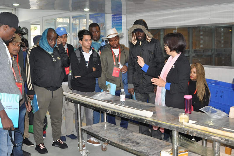 访问期间,青岛海洋所副总工程师印萍研究员向研修班学员们介绍了研究所基本情况、近年来工作进展及成果,并着重介绍了与“一带一路”沿线多个国家合作开展的海洋地质调查研究工作。随后,学员们分别参观了海洋地质岩芯库、自然资源部天然气水合物重点实验室和科技展览馆。