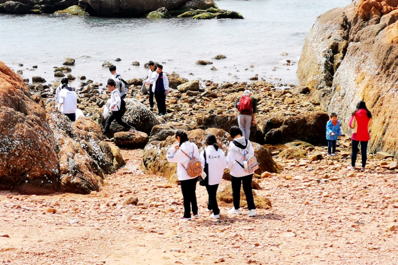 本次活动中,印萍研究员利用清明小假日,与同学们一起,沿着海岸线,穿梭在岩石上,行走在海水边,用实际行动与同学们在海边捡拾清理垃圾。同时,给大家介绍了海洋生态保护,尤其是海洋塑料垃圾的科普知识,讲解了垃圾分类对于人类生活的重要意义,学生们以及游客受益匪浅。