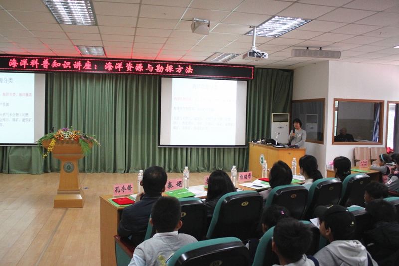 同学们在认真听取科普报告的过程中,兴致勃勃,仔细聆听,对大海和资源充满了好奇,对老院士充满了敬仰,对“海洋地质九号”调查船产生了浓厚的兴趣。