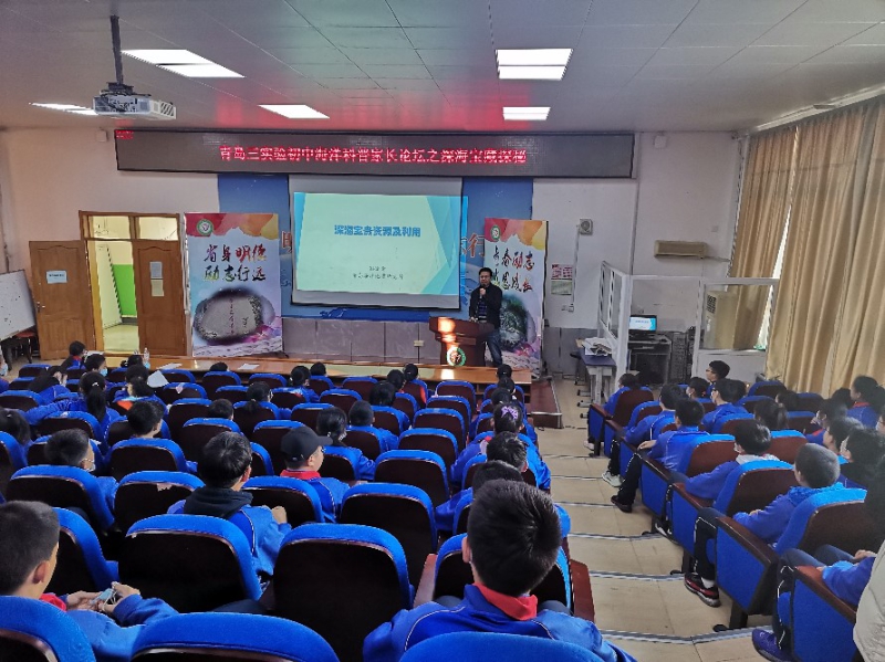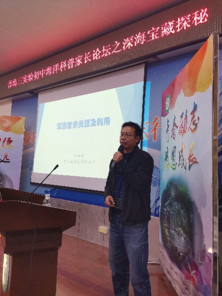 2020年11月12日,自然资源部中国地质调查局青岛海洋地质研究所孙治雷研究员应邀到青岛第五十七中学为初一年级学生呈现了一场精彩的海洋矿产资源探测开发科普报告。