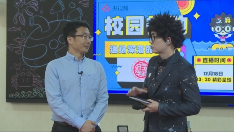 2020年12月18日,自然资源部中国地质调查局青岛海洋地质研究所胡刚博士应中央电视台少儿频道邀请,参加《芝麻校园行动—送给深海的礼物》直播活动,与主持人芝麻一起走进历史悠久的北京府学胡同小学,为同学们奉上一堂《海上科考见闻与海洋调查研究》科普讲座,并与现场的同学们进行了面对面交流。