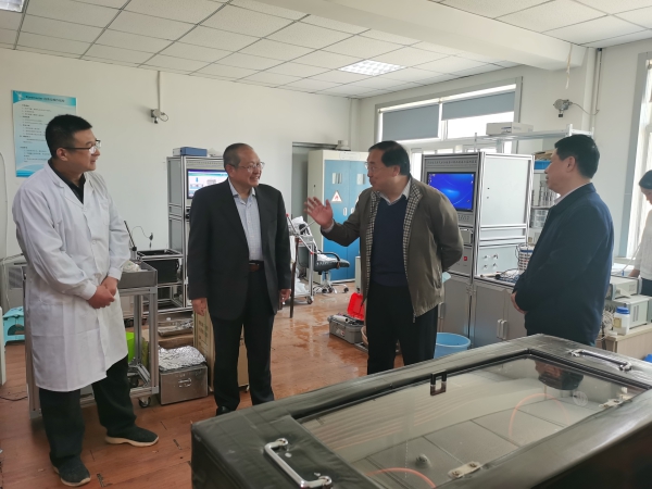 郭建秘书长一行参观了青岛海洋所重要科普板块-自然资源部天然气水合物重点实验室,科技人员介绍了依托实验室仪器设备等科技资源和科技创新成果,开发可燃冰晶体结构模型,开展“解密可燃冰”研学课程实践,组织“云上参观可燃冰实验室”等科普活动的情况,对XRD-CT实验室、NMR核磁共振实验室,声学和电学实验室和低温实验室的功能、天然气水合物实验测试和模拟研究做了科普讲解,展示了可燃冰样品,进行了可燃冰分解和点燃实验。郭建秘书长对实验室科技创新和科学普及工作给予高度评价。