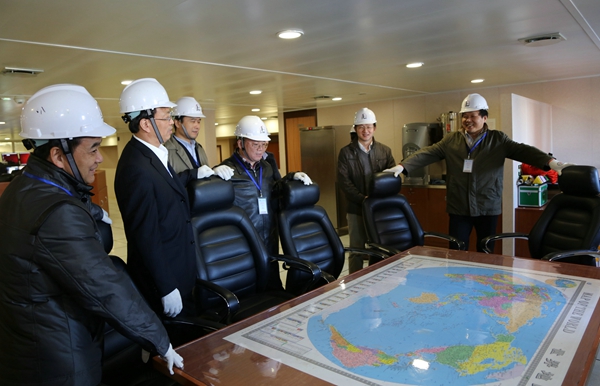 3月3日,青岛所彭轩明所长一行来到中石化上海海洋石油局第一海洋地质调查大队新建造的“发现六号”进行调研参观,为我所综合物探调查船船的建设进行调研。张训华副所长、胡思敏副所长、张志珣副总工程师及相关部门负责人陪同调研。
