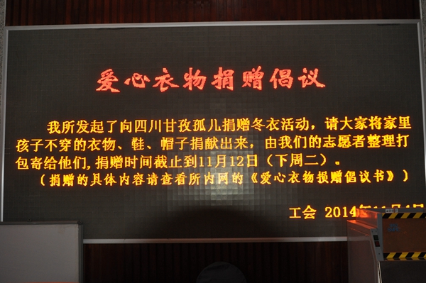 经过征求意见、宣读行为规范等程序,我所爱心团队正式成立,标志着我所的爱心志愿者活动由原来分散的个人行动,变成了有组织的志愿者团队行动。仪式期间,爱心志愿者团队临时负责人就近期将要开展的爱心志愿者活动进行了安排,并宣读了本周开展的“爱心衣物捐赠活动”的倡议书,倡议志愿者发动身边的同事积极为四川甘孜贫困儿童捐赠冬衣。