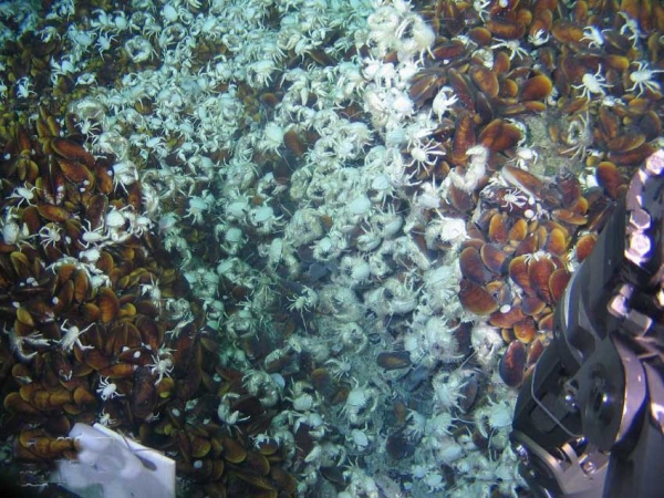 毛瓷蟹和贻贝 管状蠕虫和盲虾