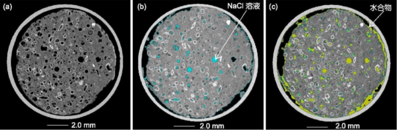 甲烷水合物在南海沉积物中生长过程微观分布的CT图像