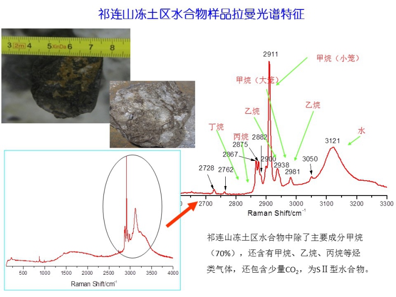 点火实验结束之后,主持人带大家来到激光拉曼实验室,郝锡荦博士从天空为什么是蓝色的讲起,介绍空气中的氧气和氮气分子的瑞利散射现象,以及光的另一种特殊的散射现象-拉曼效应,正如每个人的指纹是不同的,不同的物质都有属于自己特征的拉曼光谱。正是利用这个原理,科学家用激光照射水合物样品,就可以鉴定水合物的类型。郝博士展示了南海和祁连山水合物样品的拉曼光谱,观众们也可以轻松地鉴别出二者的不同。