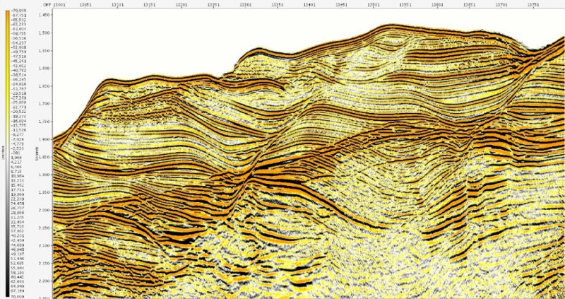 最后,观众随着镜头来到了地震数据处理中心,徐华宁主任用一段“海洋地质九号”实施地震测量的动画给观众介绍了如何利用地球物理方法快速寻找海底可燃冰藏,他展示了经过处理的赋存可燃冰地层的地震剖面,漂亮的剖面展示了科技人员高超的处理水平,赢得了网上同行的称赞。徐主任用通俗易懂的语言讲解了水合物储层的反射特征,他热情地鼓励观众认真听讲,成为一名水合物地震勘探小专家。