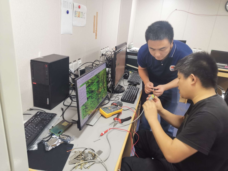 为确保任务的顺利实施,备航是最为重要的一环。在“海洋地质九号”完成上一航段任务靠港后,科考团队即登船进行航前准备。由于本次任务为可视化操作,需要将绞车、光学信号、声学信号、GPS信号同时接入到一起。科考团队在短时间内,迅速搭建起临时可视实验室。在此期间,他们还争分夺秒地完成了光纤熔合、网络搭建、光缆穿缆等工作,并在码头对光学拖体进行了海试以及全流程演练。