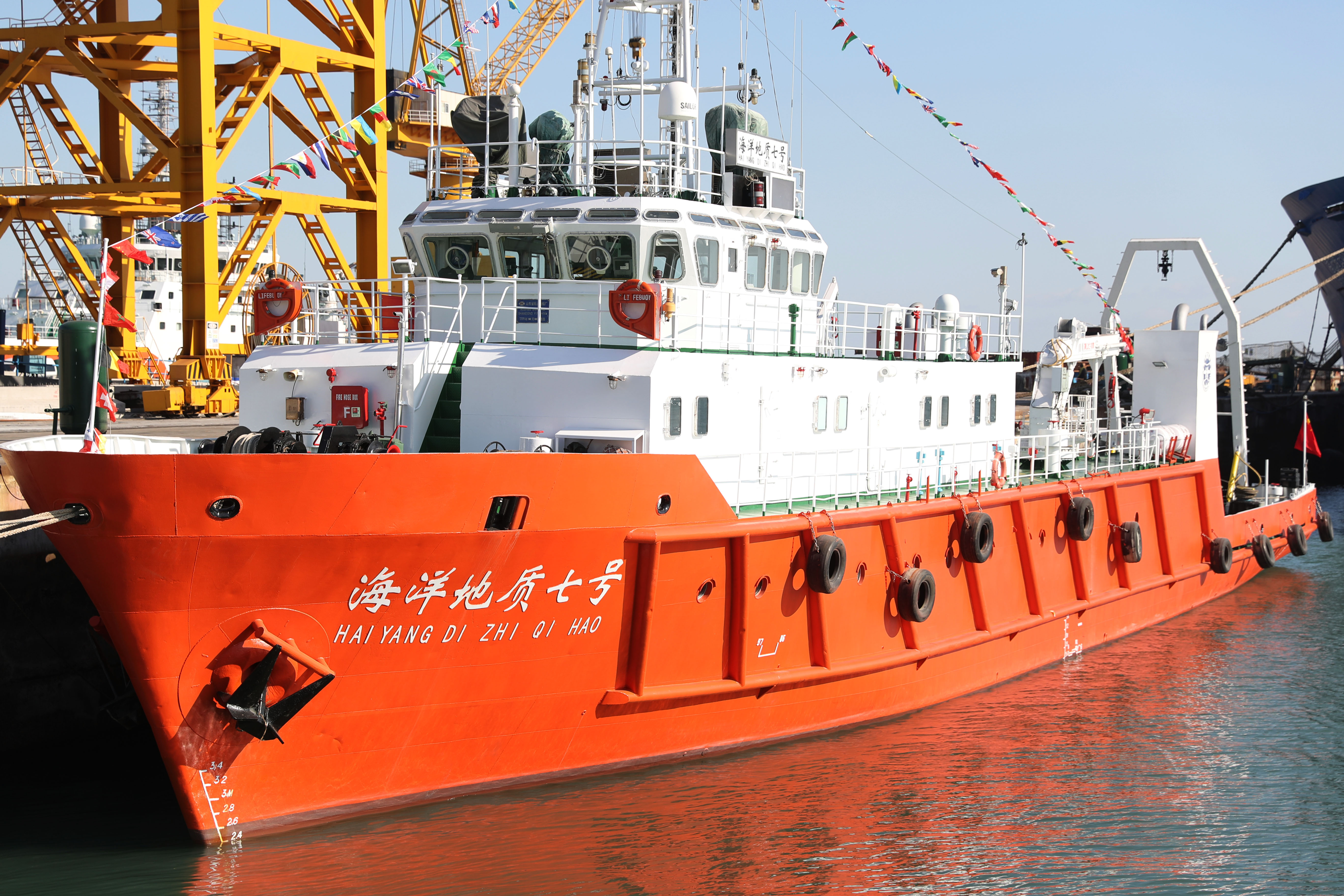 12月19日,自然资源部中国地质调查局青岛海洋地质研究所“海洋地质七号”科考船在山东省威海市交付使用,该科考船也正式加入中国地质调查局科考船队序列。
