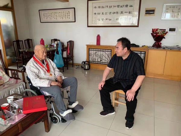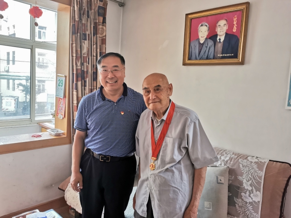 党委书记赵洪伟为老党员王欣业颁发纪念章