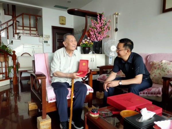 颁发“光荣在党50年”纪念章工作是中国共产党成立100周年庆祝活动的重要组成部分,对于增强党员的荣誉感、归属感、使命感,汇聚全党为实现“十四五”规划和2035年远景目标持续奋斗的磅礴力量,具有十分重要的意义。青岛海洋所高度重视此项工作,在充分了解老党员身体状况和家属意愿的基础上,详细制定颁发方案。所领导班子成员分别前往福州路园区离退休党员活动室和老党员家中,为老党员颁发“光荣在党50年”纪念章;同时,也对老党员和家属进行了慰问,不仅送上鲜花和所纪念笔记本,也送上祝福和问候。