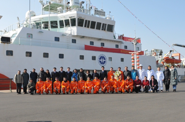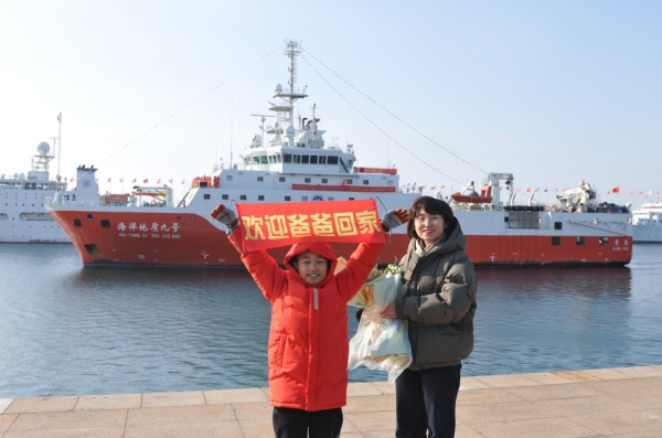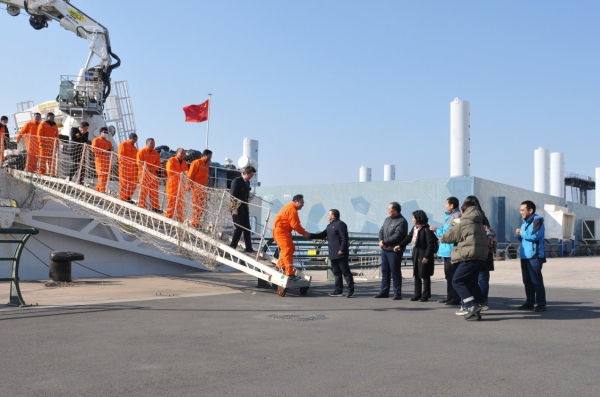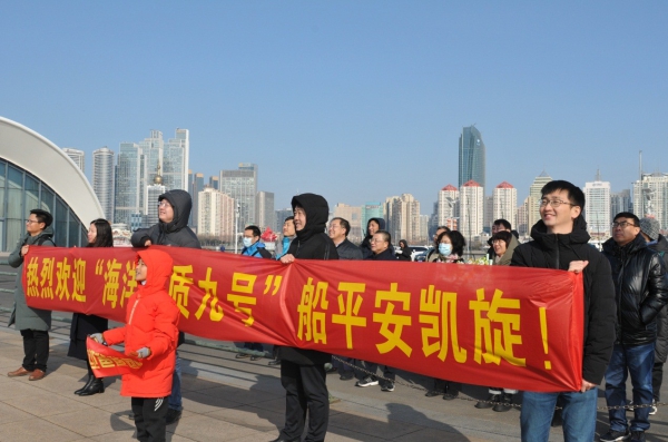早春的青岛依然寒风凛冽,青岛海洋地质研究所所领导班子全体成员、相关部门负责人以及部分参航人员家属代表翘首以盼,在码头迎接“海洋地质九号”船的归来。