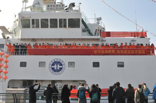 2022年2月16日,自然资源部中国地质调查局青岛海洋地质研究所“海洋地质九号”船结束112天的跨年度远洋调查航次任务,顺利凯旋青岛母港。