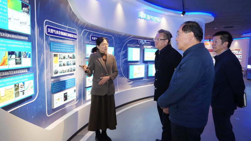 调研期间,刘旭副局长一行先后参观了青岛海洋地质研究所科技成果展厅、自然资源部天然气水合物重点实验室、大洋钻探岩心库。