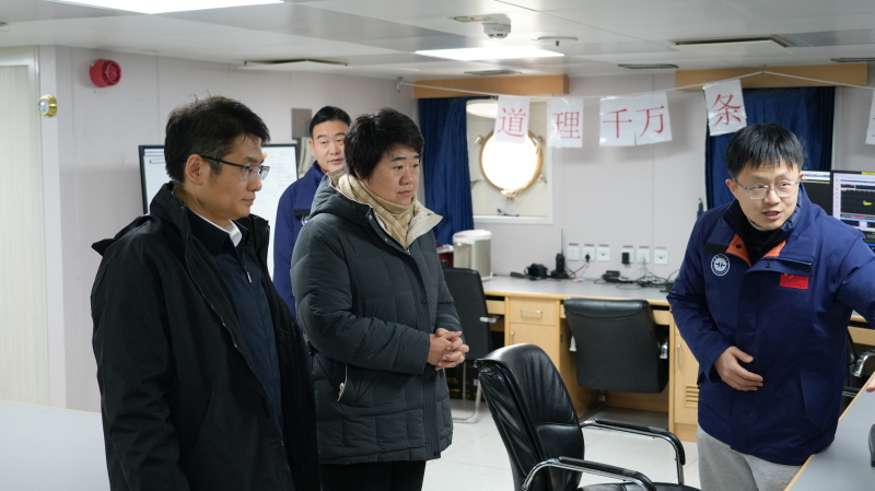 调研期间,刘艳杰书记一行先后参观了自然资源部天然气水合物重点实验室、大洋钻探岩心库和“海洋地质九号”调查船。