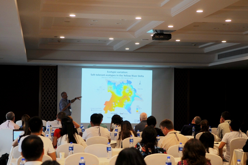 作为分会召集人,青岛海洋所邀请到了来自美国,丹麦,西班牙等国家的23位学者做了针对滨海湿地服务功能的专题报告,专题报告涉及滨海湿地地质学、生物学、生态学、生物地球化学等多个学科,内容包括湿地海水入侵,湿地对海平面上升的响应,湿地碳循环,湿地植物生长驱动力,湿地修复与重建,湿地环境监测方法等多个研究方向。与此同时,局滨海湿地生物地质重点实验室的青年科学家们带去了13个展板,全面展示出了近年来青岛海洋所在滨海湿地领域取得的研究进展,研究成果受到了与会者的一致好评。