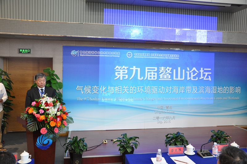 9月26日,青岛海洋科学与技术国家实验室海洋地质过程与环境功能实验室联合中国地质调查局青岛海洋地质研究所与中国地质调查局滨海湿地生物地质重点实验室,共同发起了以“气候变化与相关的环境驱动对海岸带及滨海湿地的影响”为主题的第9期鳌山论坛,并顺利闭幕。中国地质调查局严光生总工程师、美国地质调查局Matthew Eric Andersen副局长出席会议并发表了重要讲话,美国地质调查局朱志良主任、美国国家湿地中心Scott Allen Wilson主任、海洋国家实验室潘克厚秘书长出席了会议。青岛海洋地质研究所吴能友所长主持了开幕式。