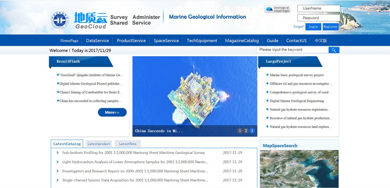 据工程首席魏合龙研究员介绍,海洋地质信息网英文版是中国地质调查局继海洋地质信息网中文版网站上线服务之后,面向国际社会公众提供海洋地质信息社会化服务的专业网站,是宣传和展示海洋地质调查与研究工作的窗口,可以极大提高中国地质调查局在海洋地质调查领域的国际影响。网站英文版首批在线公开的数据资料,包括数据目录100余条,元数据150余条,在线成果图件43幅,成果报告10余份,海洋地质调查领域期刊目录200余条、文献资料1700余篇。
