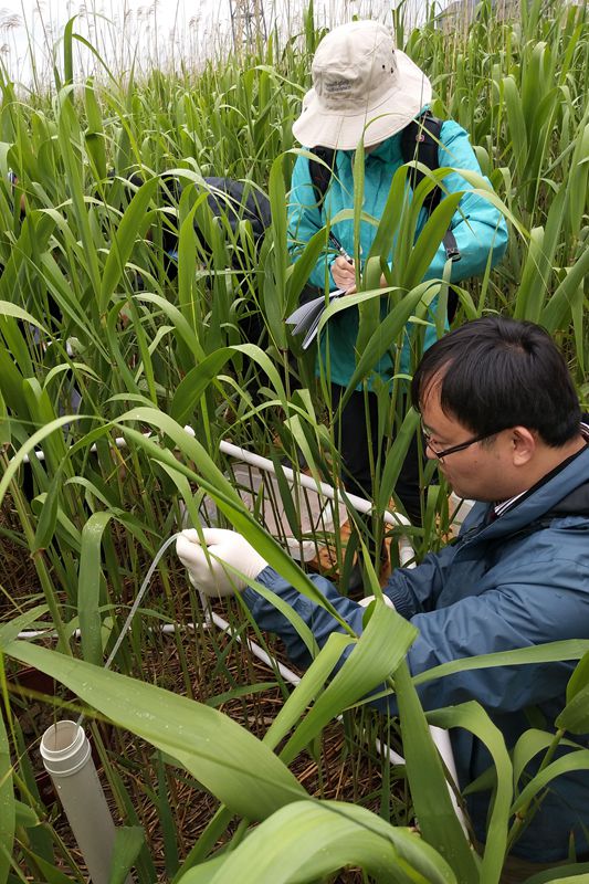 此次监测工作包括大气、地表水、孔隙水、土壤和植物等多圈层多要素的监测,其监测内容包括增温和非增温条件下的光合、生态系统呼吸、硫化氢释放通量以及地表高程动态变化的对比监测;生物量调查监测;表层土壤和孔隙水取样;环境理化参数的初步测试;芦苇生境区大气下垫面的二氧化碳、水分等的物质交换和能量交换监测等。