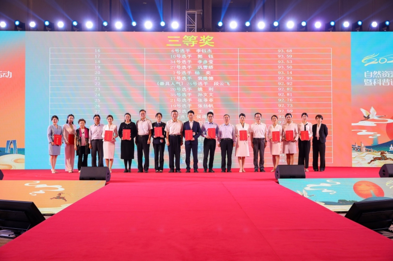 自然资源科普讲解大赛是由自然资源部主办的一项全国性比赛,并作为自然资源部各项科普工作的“样板工程”受到大力推动。此次决赛由中国地质博物馆(自然资源科普工作办公室)、江苏省自然资源厅、徐州市人民政府、江苏省地质学会等单位承办,决赛设置了自主命题讲解和随机命题讲解环节,采用现场评审和同步网络直播方式开展。比赛共产生一等奖5名,二等奖10名,三等奖21名,最佳形象奖、最佳口才奖、最佳人气奖各1名,优秀组织奖18家单位。